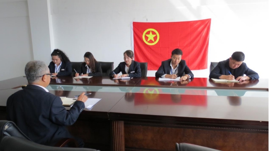 支部全體團員和青年職工在團旗下齊唱團歌、重溫入團宣誓,用洪亮的聲音再次堅定了"不忘初心跟黨走、青春建功新時代"的青春誓言,拉開了主題團日活動的序幕。在濃厚的氛圍中,更加激發(fā)了團員青年的愛國之情,強化了愛國之志。