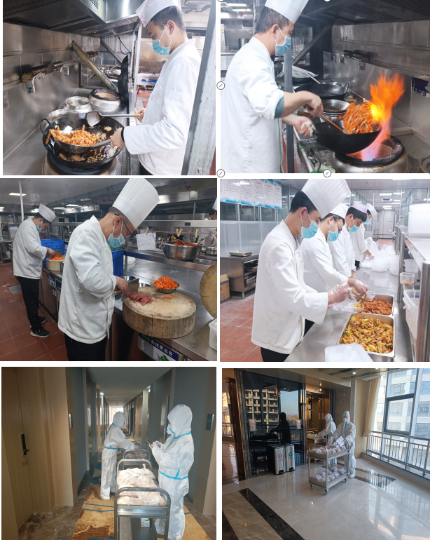 “疫情防控工作專班及高速卡口工作防疫逆行者們不顧危險奔赴一線,我們當(dāng)仁不讓為他們保障后勤!”每一位職工服從公司統(tǒng)一指揮,堅(jiān)守自己的工作崗位。每天凌晨3點(diǎn),廚房里就開始熱鬧起來了,切菜、掂勺、出鍋、裝盒……廚師們戴著口罩、帽子、手套,“全副武裝”地站在操作臺前,有條不紊地開始為“最美逆行者”每日三餐忙碌準(zhǔn)備,保障防疫逆行者們在酒店期間能安心食宿。