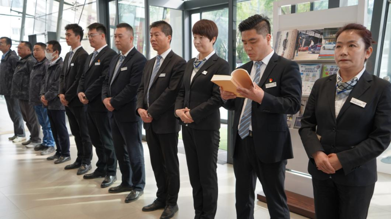 2023年6月9日,集團(tuán)黨委委員、副總經(jīng)理秦翡聯(lián)點(diǎn)物產(chǎn)汽貿(mào)開展主題教育專題黨課暨“黨性大討論”。