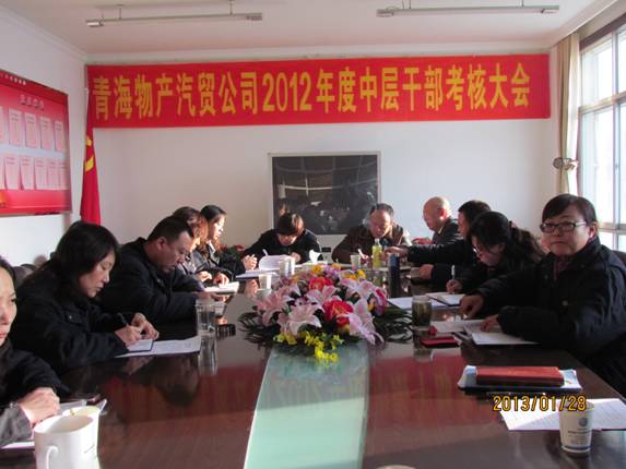 2013年1月28日,青海物產(chǎn)汽貿(mào)公司召開(kāi)了2012年度中層干部考評(píng)會(huì)議,公司領(lǐng)導(dǎo),各部、海東分公司負(fù)責(zé)人,公司中層副職和重點(diǎn)崗位、骨干員工代表共28人參加了會(huì)議。會(huì)議由黨支部書(shū)記黃曉梅主持,總經(jīng)理張宏民做了重要講話。